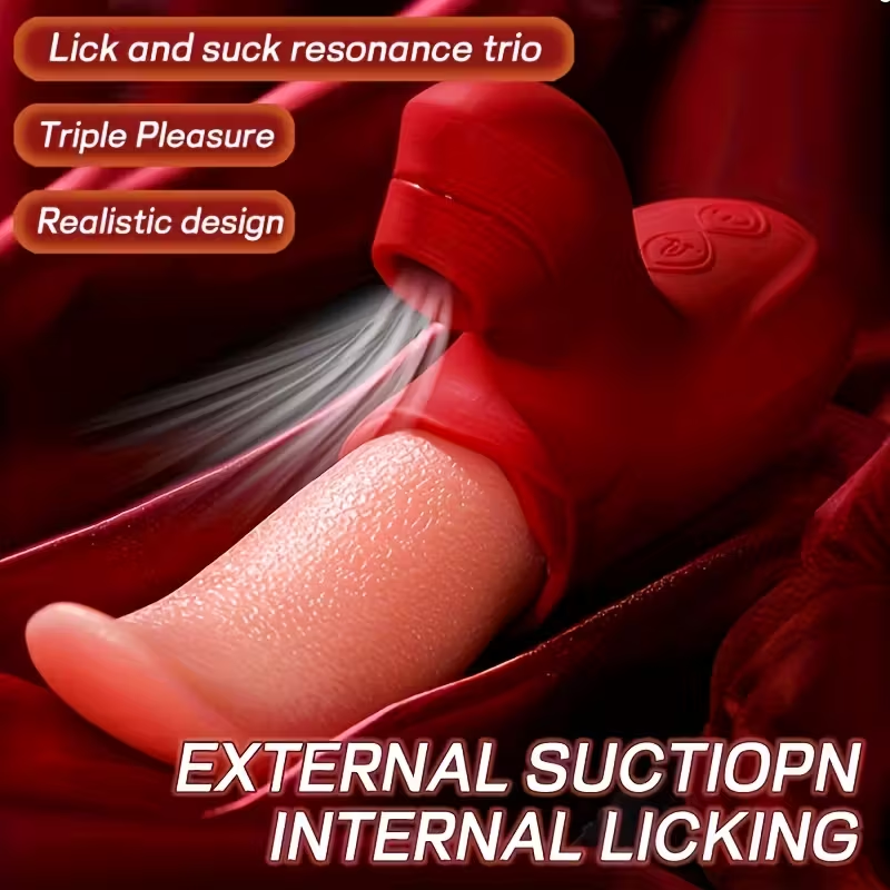 Experience the ultimate in pleasure with the Lick and Suck Resonance Trio. Featuring a realistic design, it combines external suction with internal licking for triple the satisfaction. Perfectly crafted for your indulgence.